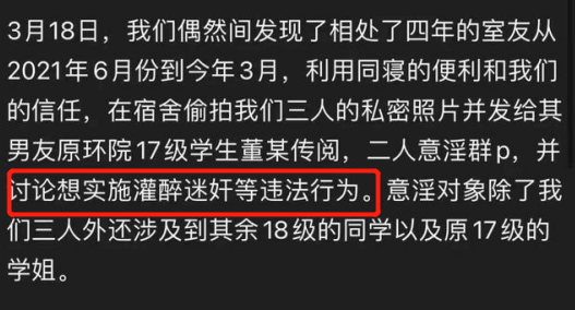 若不是其中一个舍友后来偶然撞破她的秘密,恐怕日后真的会有人受到更严重的侵害。