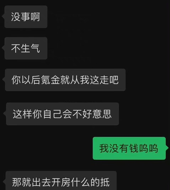 比如她绑定了男的苹果ID,不小心花了118往游戏里充值。男的第一时间就来兴师问罪了,还提出让她开房来抵。