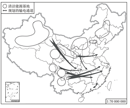 “十四五”期间,我国将开发建设清洁能源基地,为“西电东送”提供电力。下图示意我国大型清洁能源基地分布及规划的输电通道。读图,完成下面小题。