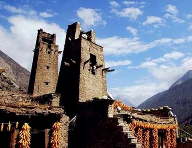 碉房是藏族传统民居,其墙壁用毛石垒砌,开窗甚少,大多建在背风向阳的山坡地段。近年来,传统碉房数量急剧减少。下图示意我国青海省南部碉房景观。读图,完成下面小题。