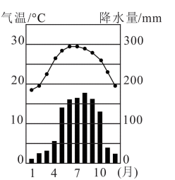 菠萝喜温暖、怕积涝,在年均温24~27℃,年雨量1000~2000mm的气候条件下生长最为适宜。2020年4月,我国徐闻县首次向日本出口菠萝。左图示意我国菠萝主要种植县分布,右图示意徐闻县气候资料。