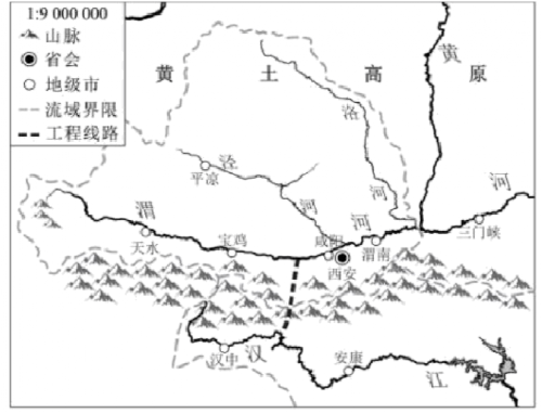 29. 渭河是黄河最大的支流,发源于甘肃,经陕西而入黄河;泾河又是渭河的支流,发源于宁夏。二水在西安市高陵区相汇,自古以来,渭河流城域农业发达。近年来,为缓解渭河流域水资源紧缺形势,政府实施了“引汉济渭”工程,读图,完成下列问题。