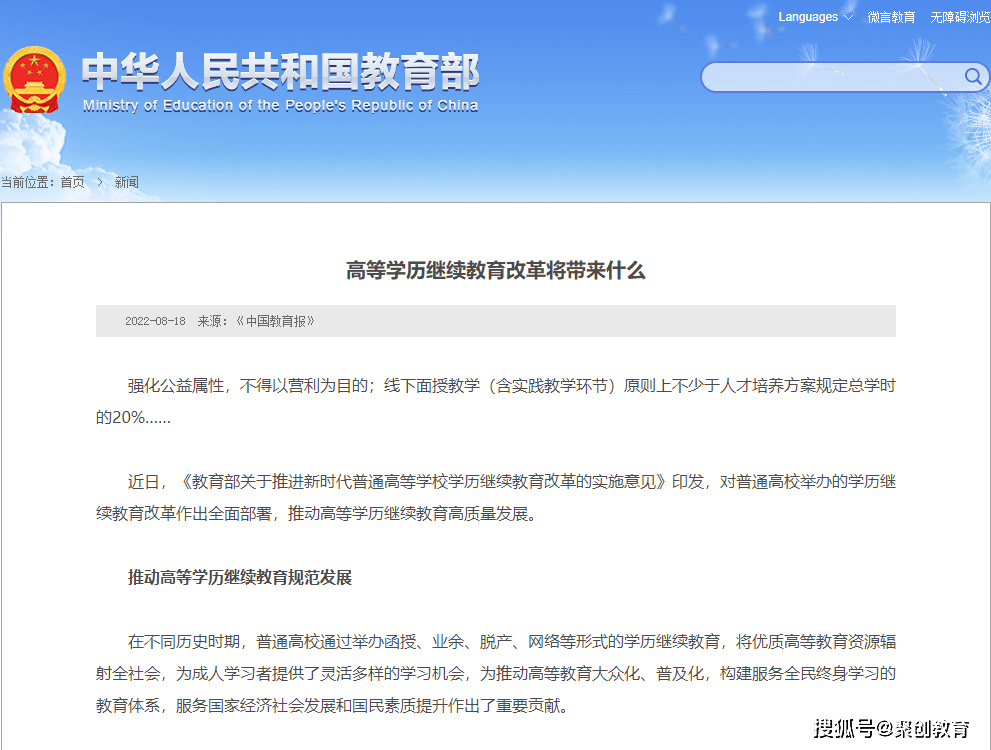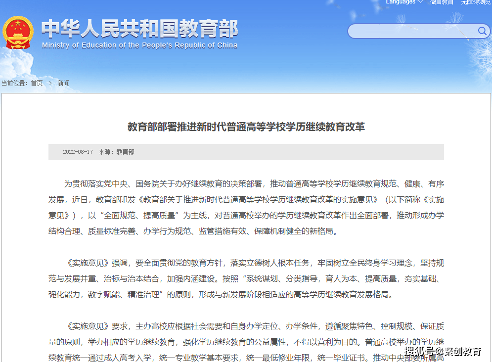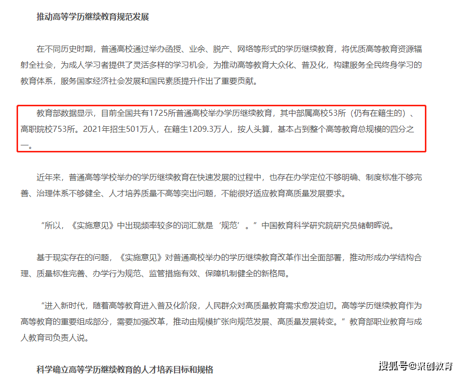 近日,《教育部关于推进新时代普通高等学校学历继续教育改革的实施意见》印发,对普通高校举办的学历继续教育改革作出全面部署,推动高等学历继续教育高质量发展