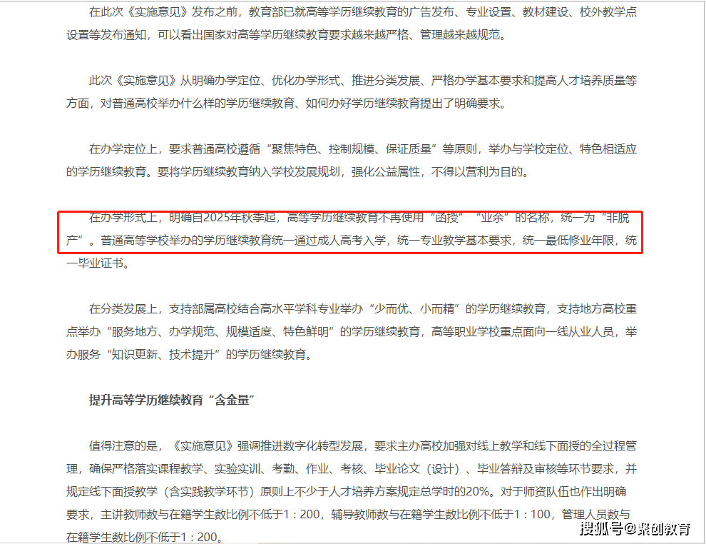 教育部文件中明确规定自2025年秋季起,高等学历继续教育不再使用函授,业余名称,统一为非脱产。与之相对应的是专业教学基本要求,最低修业年限,毕业证书都将迎来统一规范