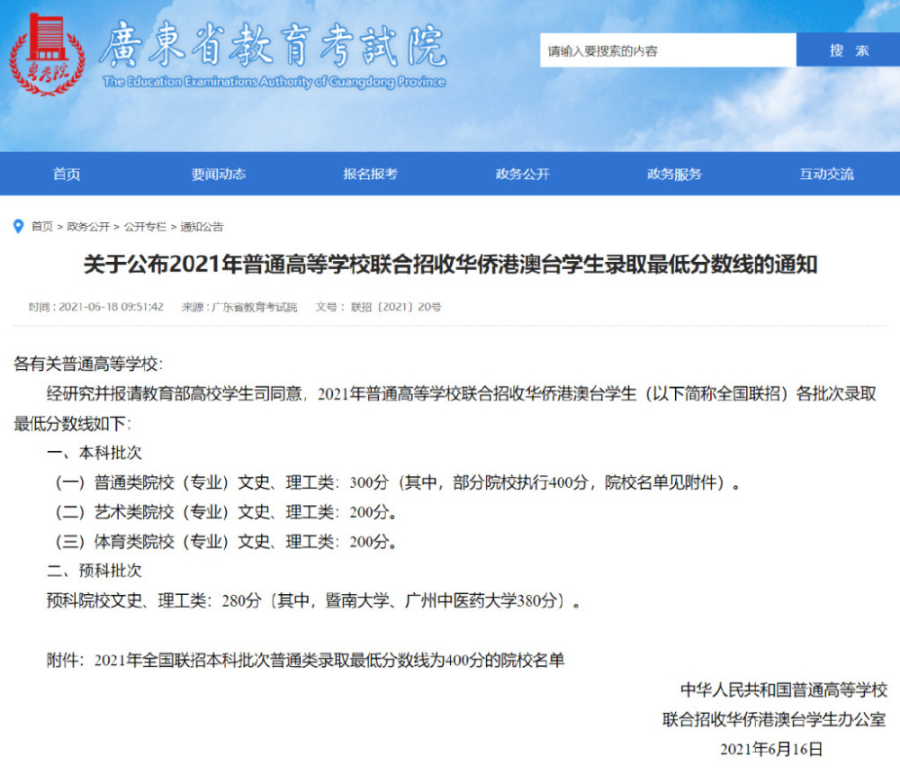 录取分数低:平均比内地普通高考的录取分数线低150分-200分左右,400分就可以上985、211一本院校,二本300分,艺术类200分,且不占用高校的普通高考招生指标。