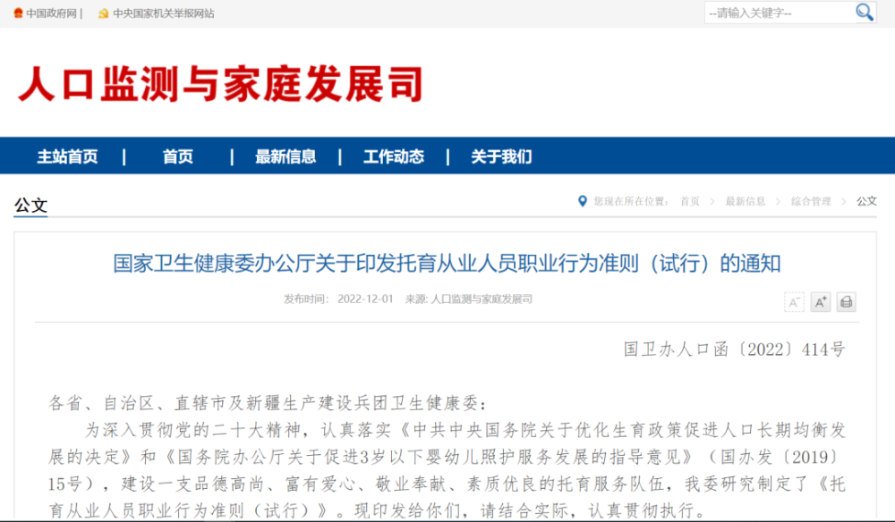 国家卫健委办公厅发布《托育从业人员职业行为准则(试行)》