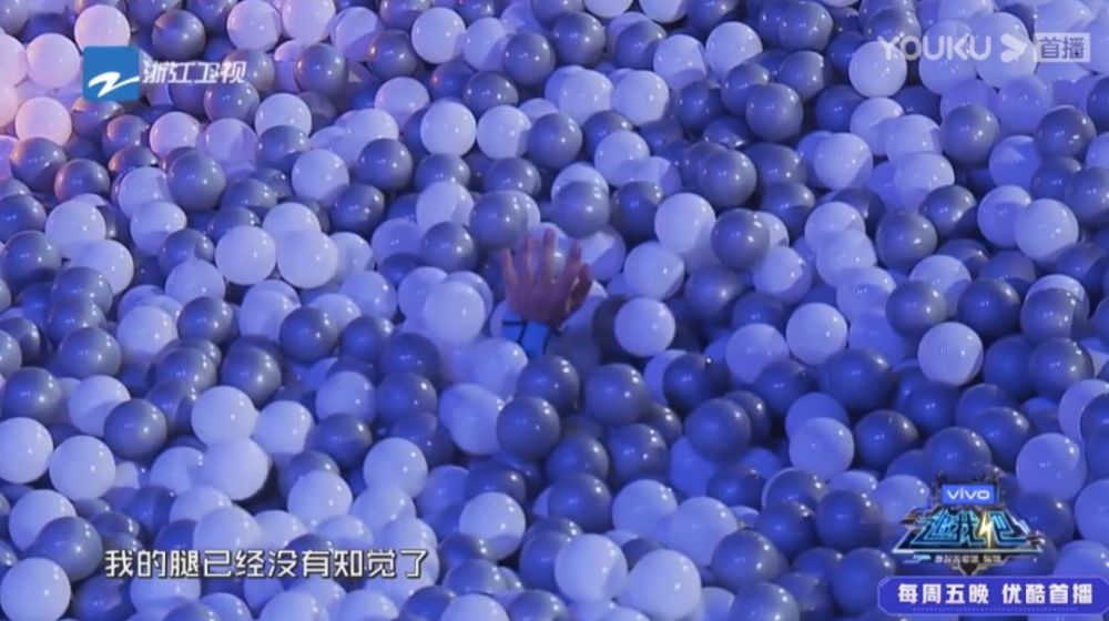 邹市明不慎掉入海洋球堆内,一开始还能露出头和手