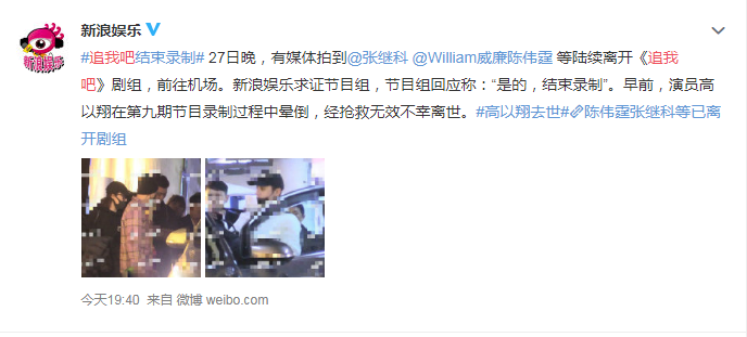 27日晚,据新浪娱乐报道,《追我吧》节目宣布结束录制。