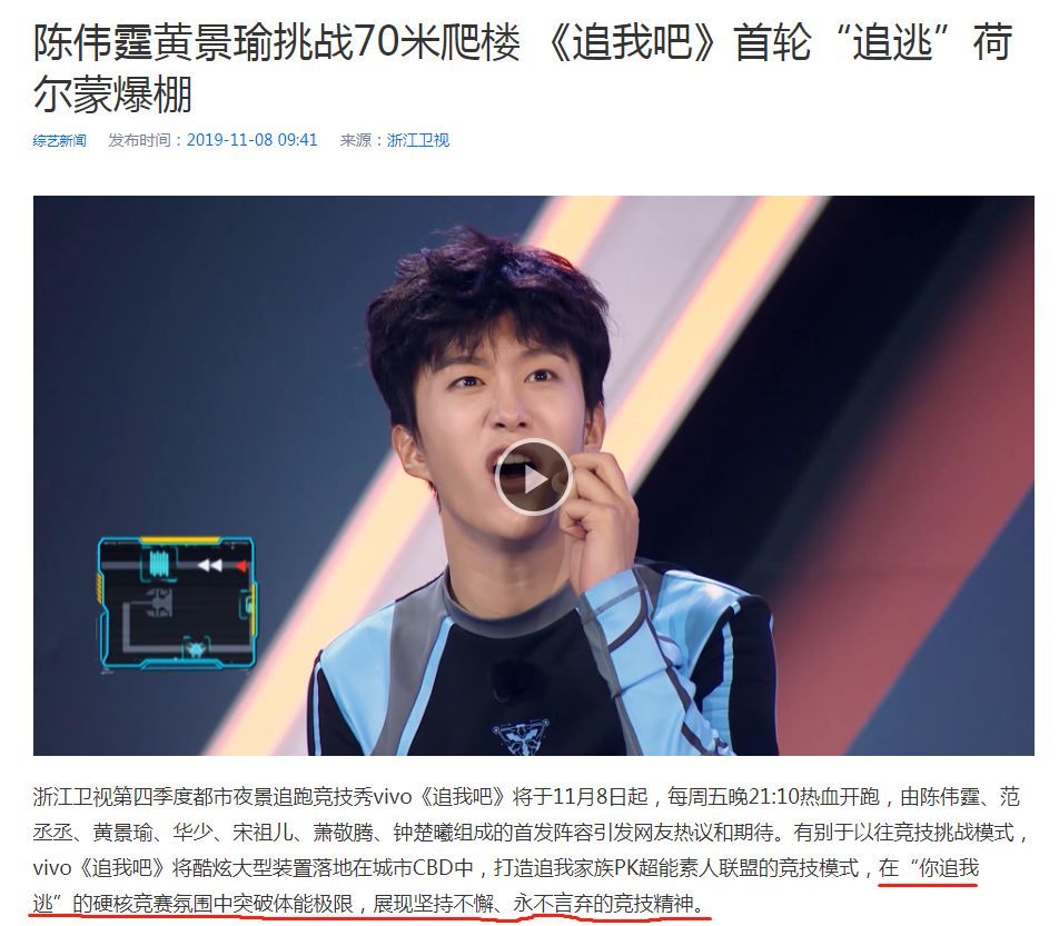 高以翔所参加的综艺是《追我吧》,从浙江卫视官网上的介绍上看,这个节目的卖点就是“打造追我家族PK超能素人联盟的竞技模式,在‘你追我逃’的硬核竞赛氛围中突破体能极限。”