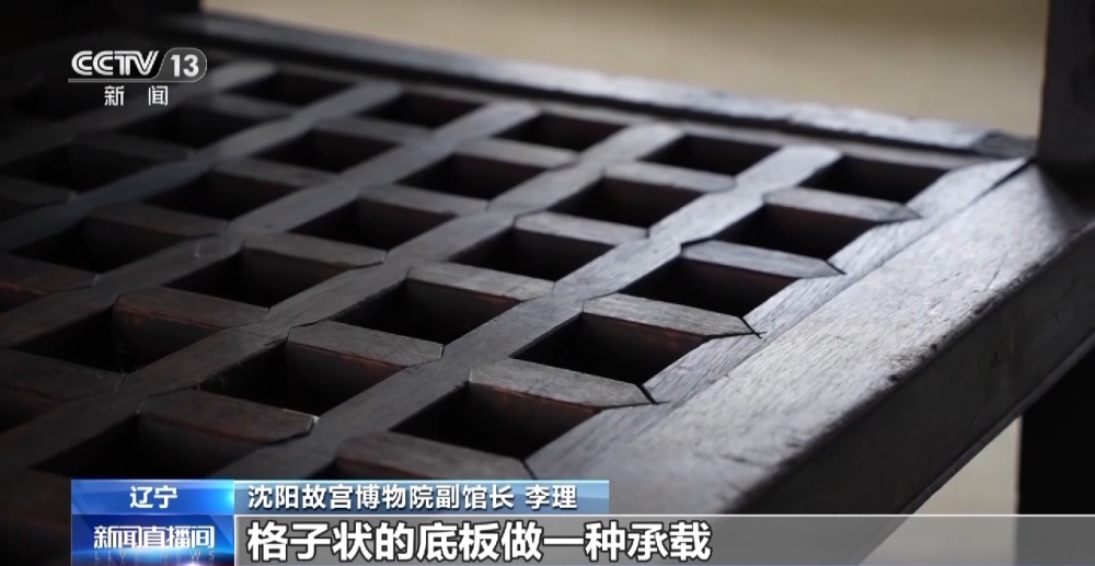 沈阳故宫博物院副馆长 李理:这些大书架都是用金丝楠木做的,现在看,这材料就已经非常珍贵了,然后当时是为了更好地来保存这些图书,这些架子做的时候,都是用特殊的形式,你看这个底板儿,它不是一块完整的木板,是用这种透气的、格子状的底板做一种承载。因为书就怕发霉发潮,有这个格子之后,可以很好地进行通风,透气。