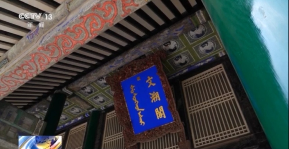 沈阳故宫博物院副馆长 于明霞:文溯阁这个牌匾是在北京做的,当时的内务府就把这个牌匾已经做出来了,建筑还没成,尺寸也不知道,做成了运到这以后发现稍稍有些大,放不下了,工匠们就想了一个比较折中的办法,应该放到二楼这个位置上的,后来把它放在了一楼。