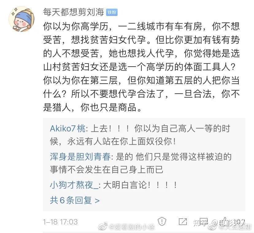 套用这两天网上流传的一句:代孕一旦合法,“你不是猎人,你也只是商品”,“你以为高人一等的时候,永远有人站在上面奴役你。”