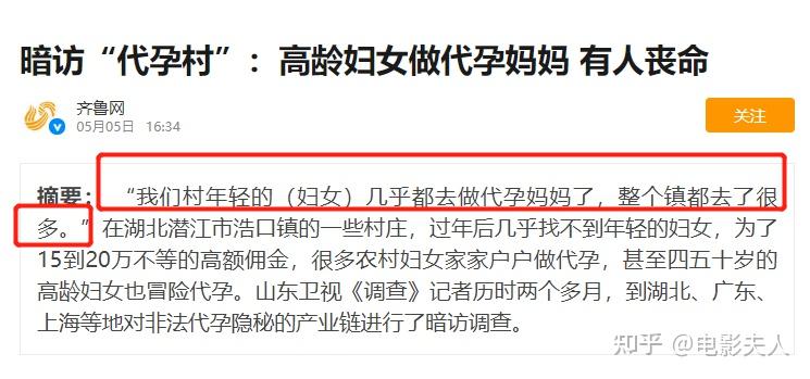 不久前,湖北曾爆出过一个“代孕村”,在这个村子上,年轻的女人几乎全部都去做了代孕妈妈,就连46岁的高龄妇女也愿意冒着生命危险去做代孕。