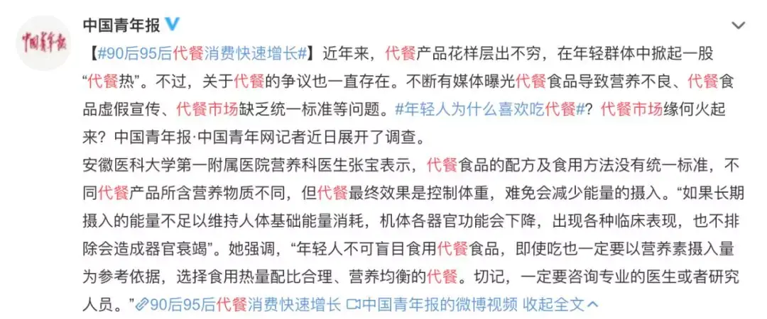 在“吃”这件事上,一些年轻人做出了另一种选择:代餐。