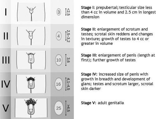 #3小林身高 163 cm,上部量 79 cm,下部量 85 cm,指尖距 166 cm,下部量 >上部量,指尖距 > 身高。体重 65 kg,BMI 24.4。非勃起状态,阴茎长度约 3 cm,阴毛 Tanner Ⅱ 期,睾丸体积约 1 mL。嗅觉测试显示:无法分辨酒精、白醋和水的气味,提示存在嗅觉障碍。图 2:男性阴毛 Tanner 分期来源:网络为了证实我的猜测,明确小林第二性征发育迟缓的病因,我们为他开具了一系列的检查:性激素全套、甲状腺功能、皮质醇、ACTH 节律、睾丸彩超、垂体 MRI 平扫 + 增强、双侧手正位片(骨龄)......内分泌的专科检查,大多与激素有关。一方面,人体的激素例如垂体激素,呈现脉冲式分泌,水平波动很大,此外,部分激素的分泌又存在的明确的昼夜节律,所以往往需要多次抽血来评估真实的激素水平。另一方面,由于内分泌系统存在各种功能轴,例如下丘脑-垂体-甲状腺轴、下垂脑-垂体-性腺轴,同一个功能轴之内的器官存在正反馈和负反馈的调整作用,为了判断究竟是轴上的哪个环节出问题,往往还需要进行相应的激发或抑制试验。而以上这些检测或者试验,都需要抽血检测血液中的相应激素水平,所以住院期间频繁的抽血是必不可少的,这对于患者来说,是一种巨大的考验!因此,在办理住院之前,我就给小林打「预防针」,提醒他要有心理准备。听我说完以后,他一如既往地呵呵一笑「没事,我不怕抽血,但是你能不能让护士小姐姐们对我温柔一点呀?」