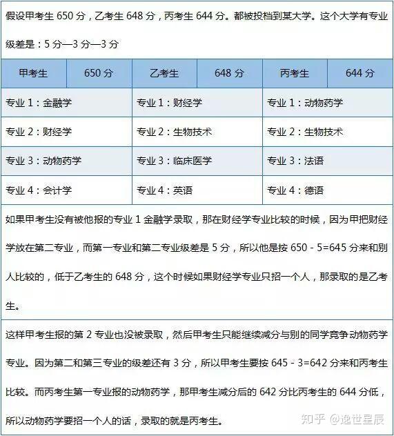 就是第一个专业是你本来的分数,但是没有录取上的话,但按照专业间的级差,第二专业在原有分数上减掉3—5分!!(具体根据学校,需要仔细看学校招生简章!)而在录取过程中,这3—5分有时候是非常关键的。