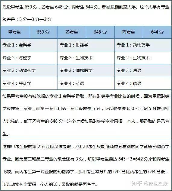 充分考虑分数级差!!!仔细看有些学校会设置分数差(只是某些学校会设置具体请看招生简章)。就是第一个专业是你本来的分数,但是没有录取上的话,但按照专业间的级差,第二专业在原有分数上减掉3—5分!!(具体根据学校,需要仔细看学校招生简章!)而在录取过程中,这3—5分有时候是非常关键的。在选择专业的时候,要充分考虑分数级差,不要只选择热门的,并合理安排好各专业的位置。