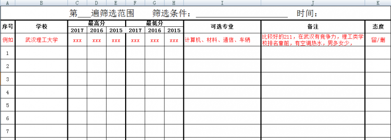 这时候你就把这些可能需要碰运气才能报考到的专业放在前面放入前1/4左右的志愿中,然后和你如今名次相当的选择出来填在中间2/4的志愿中,然后后面找一些保底的!