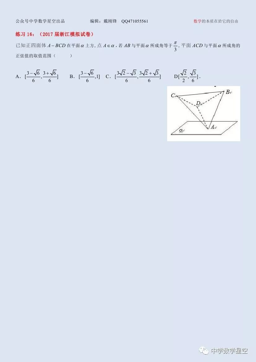 也可以公众号搜索中学数学星空加以关注 ,你若有好的解答或好的问题,欢迎 发到471055561@qq.com