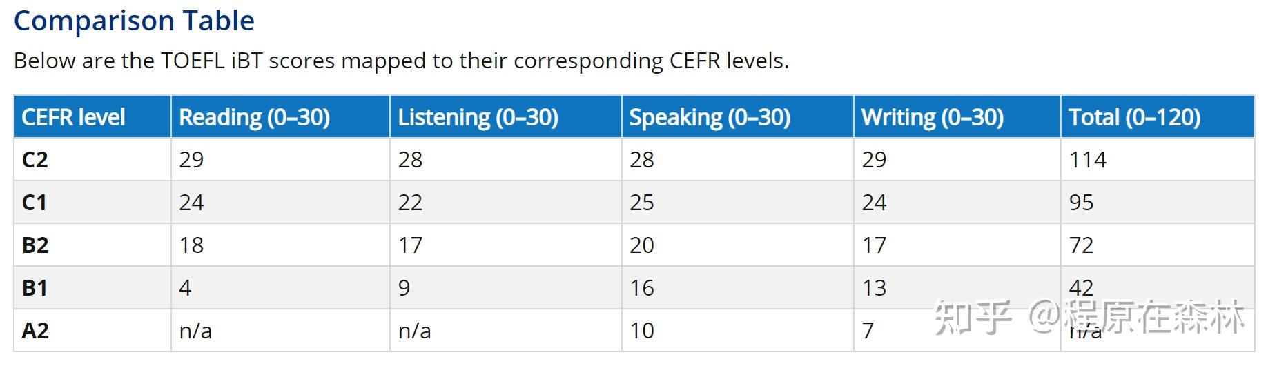 (托福和CEFR的对比,所以一般中学生刚进大学托福考个七八十分很正常)