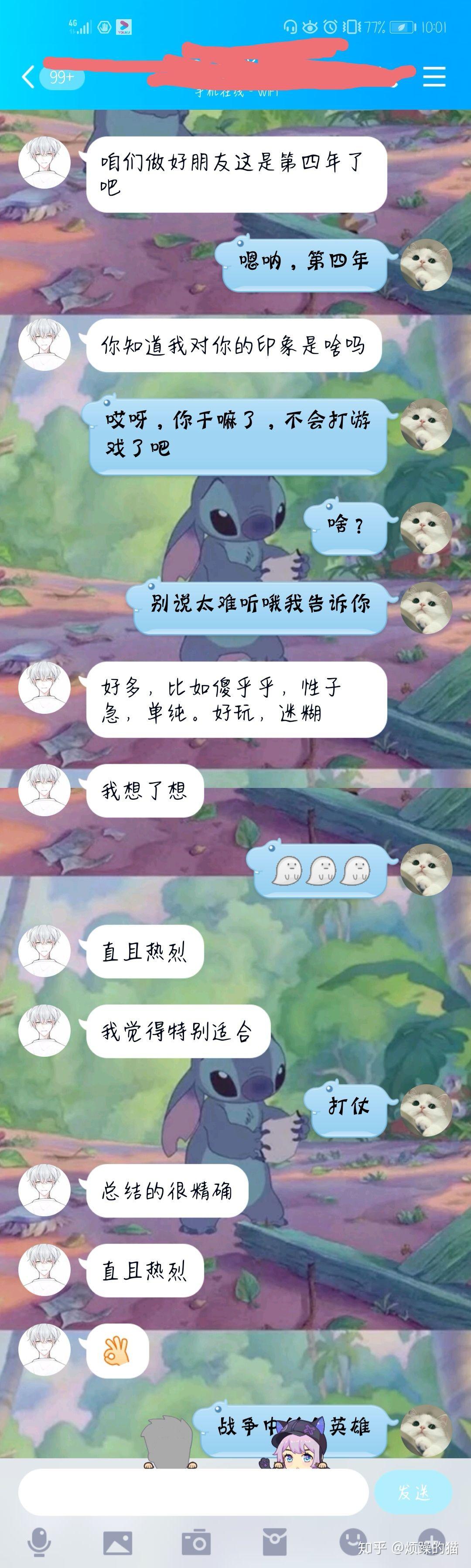 哎,我就很挫败啊,之前对我那么好的一个人怎么说劈腿就劈腿啊,关键我还听另一个朋友说,他对我评价特差(其实是这个朋友瞎嚼舌根,他没说过我),马特?你绿我还在背后骂我?然后我就不淡定了,忍了两天,还是在晚上用小号(小号还加着他了)骂他了,然后他说他没劈腿也没骂我,就是解释啥的但是关于那个女的他也没说清楚,然后我就觉得骂的很尴尬,本来也不怎么会骂人。然后就赶紧结束了,为了挽回面子,小号也把他删了。