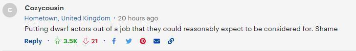 (选这些角色)让侏儒演员们失去了原本应该属于他们的工作。耻辱!