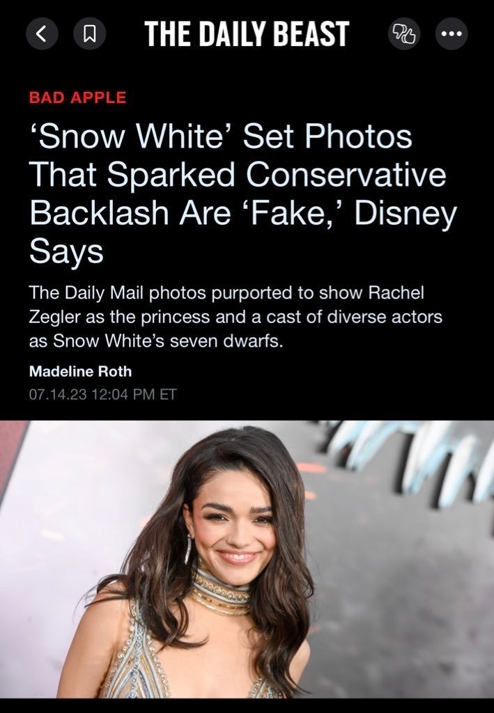 为此,有媒体采访了迪士尼公司,迪士尼发言人最初表示,这些照片是假的,不是《白雪公主》的场景。