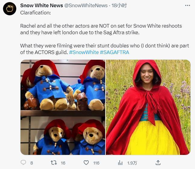 但很快,他们又改口表示,这是因为主要演员们因为参与演员罢工,离开了伦敦,所以他们请替身演员拍摄了相关的画面。