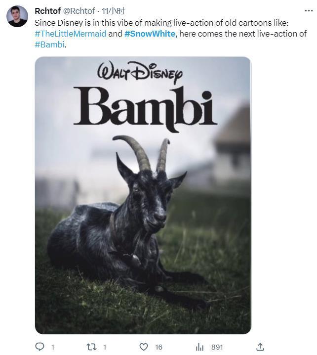 在《小美人鱼》和《白雪公主》完成之后,由于迪士尼改编真人版童话电影上瘾,于是决定推出下一步电影《小鹿斑比》: