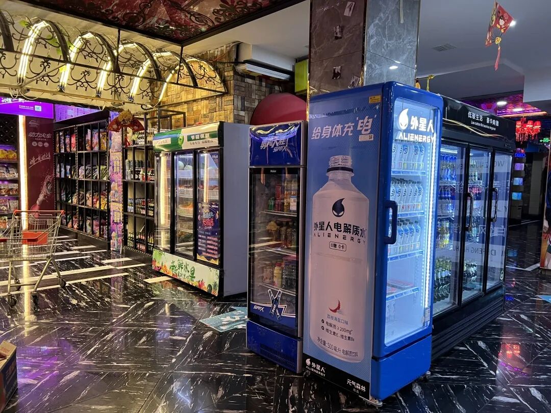 如超市般的KTV酒水、饮料选购区。姚瑶 摄