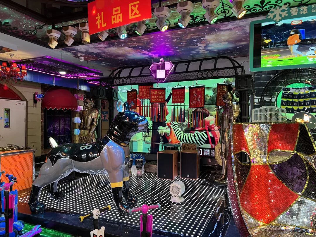 记者观察到,多数KTV大厅装修极其华丽,绚烂的灯光闪亮耀眼,不停循环播放的流行音乐音量较大。各种食品、酒品摆满货架,有的大厅内还设置了游戏区域,极个别KTV悬挂着带有暗示意味的“擦边球”标语。
