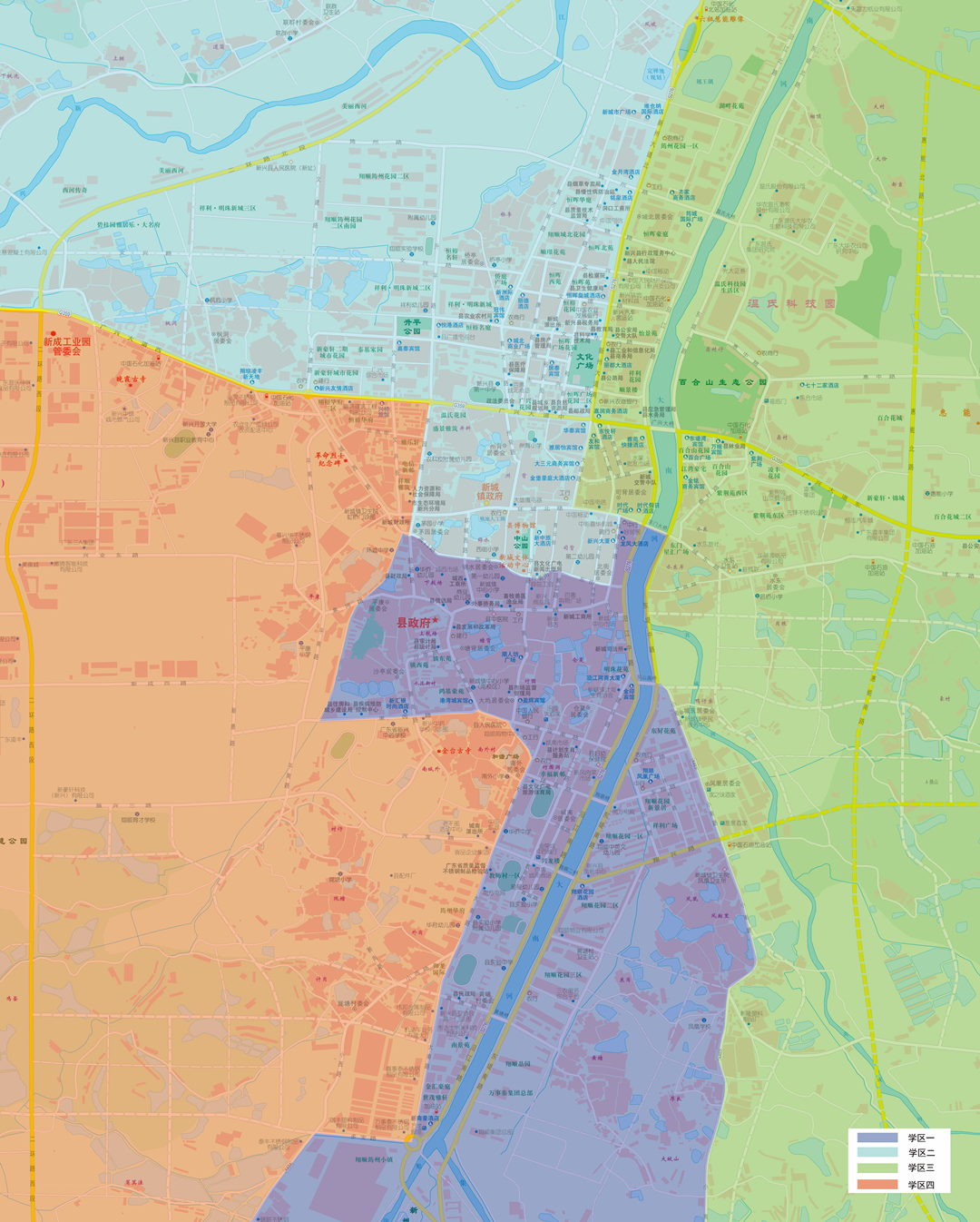新兴县中心城区公办小学学区划分平面图