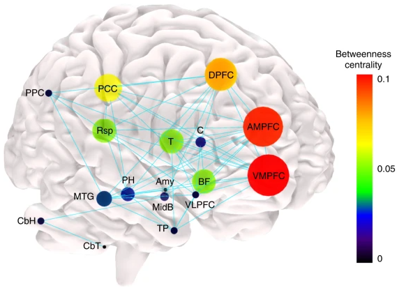 一项最新研究使用图论方法解析了DMN定义的脑区间结构网络丨来源:10.1038/s42003-019-0611-3[13]