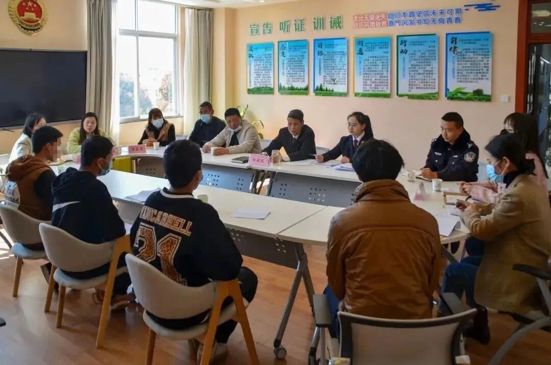 嵩明县检察院与各方联动,构建未成年人社会化支持体系,对办案中发现监护人存在失职情况的问题,有针对性地对缺位家长发出督促监护令,通过家庭教育指导,及时解决“问题”少年背后的家庭问题,让涉罪未成年人知法悔过,在重温亲情中获取力量,实现矫治教育,召开附条件不起诉不公开听证会+训诫+督促监护,落实未成年人案件诉讼程序、创新未成年人刑事检察工作,挽救失足少年使其重新融入社会,为涉罪未成年人的成长和发展保驾护航,实现法律效果和社会效果的有机统一。