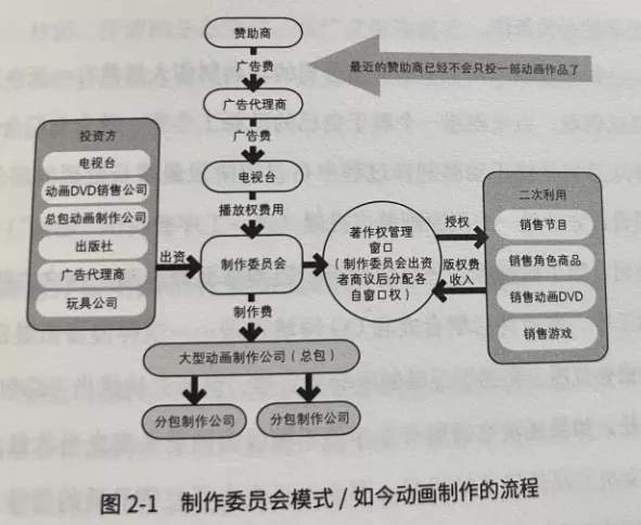 为了筹集资金,业界开始推广“制作委员会制度”,由不同行业都公司共同出资,组成制作委员会,制作委员会再抽出部分资金作为经费交给动画制作公司,由此来制作动画。此时的动画制作公司沦为“打工仔”,动画的版权归制作委员会所有。