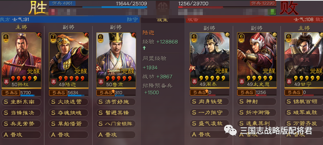 总结:首先要说的是,本期内容主要是展示陆逊的超模属性,可以看到这套君王弓的强度还是比较有限的,打那么多的小白板都那么高的战损,算是一波反面教材,配将君是不建议大家跑去玩,这战绩还不如普通的陆逊肉弓。当然了,只能说这个队伍打打藤甲兵和一些靠着指挥被动战法来玩的阵容和厉害一些,碰到爆发队伍就是直接高战损血亏那种了!