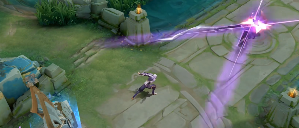 当你收回傀儡的时候,你可以发现这个傀儡,会有一个紫色的路径留下来,关键是还会留下一个电子的残影特效,可以说这款皮肤,看样子天美依然是非常用心,留下的一个护盾,也是有一个电流效果的,就凭这样的几个小细节也算是可以给一个高分的。