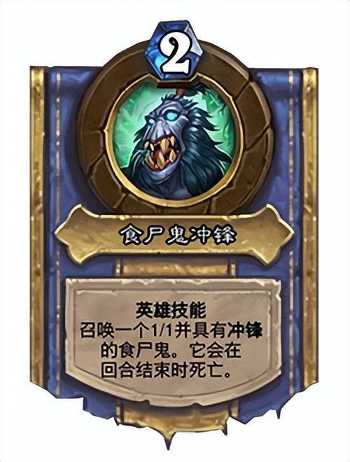 因为我们不希望出现这样一个局面,因为突袭的话,当场上没有敌人随从的时候,你的英雄技能除了能增加一个尸体计数外毫无作用。因此我们最终还是决定把它换成冲锋,这样你招一个食尸鬼出来,至少还是能够打一点伤害出来的。