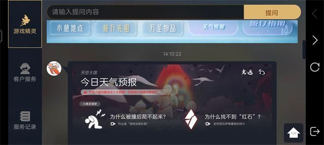 虽然时间随机化,但是日子是固定的。打开设置里的精灵,查看“天气预报”,就能得知游戏当天有没有红石,具体落在什么位置。同时里面还有每日任务攻略,玩家在上线后,可以直接打开精灵,看看红石消息。比如11月5日,精灵里显示在霞谷圆梦村,与玩家发现的落石一致。