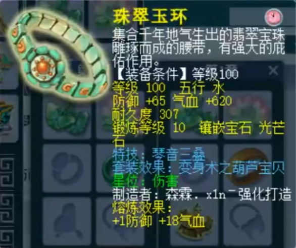 腰带部分为100级琴音三叠、葫芦套,这件装备的性价比只要在于特技。毕竟,目前最便宜的琴音三叠装备,除了项链就是腰带了。在项链不能凑活的情况下,腰带肯定是最优选。