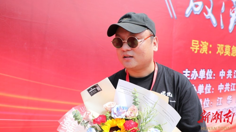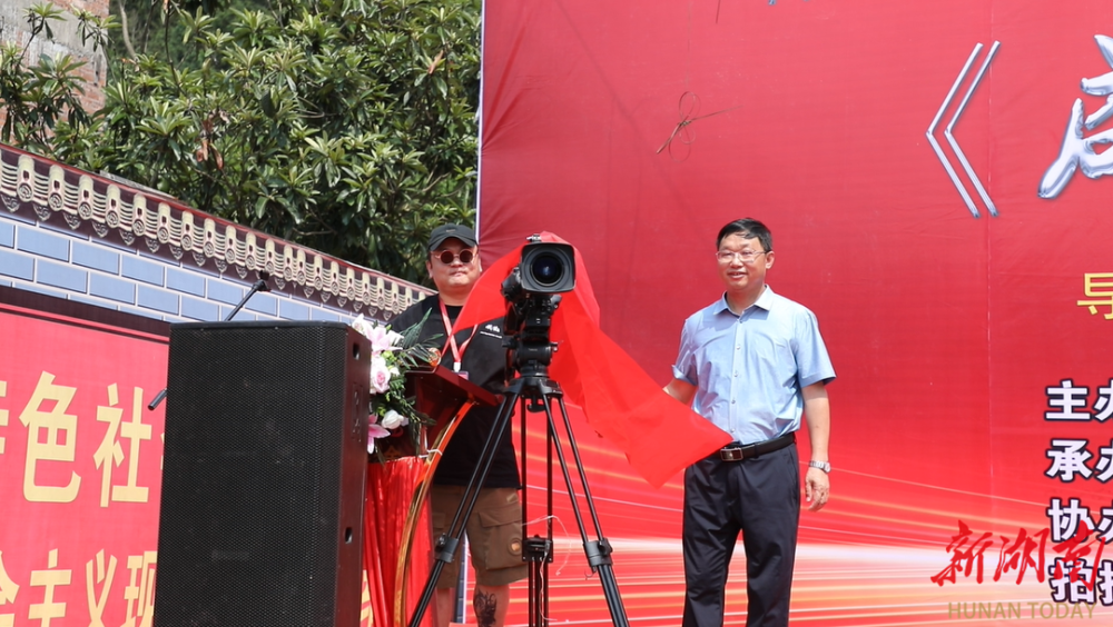 江华县人大常委会主任伍继承宣布红色微电影《启汉,启汉》正式开机。