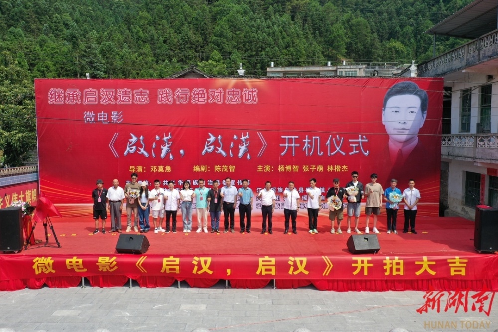 湖南日报·新湖南客户端7月16日讯(通讯员 王辉、蓝玉春、张建(见习))7月16日,红色微电影《启汉,启汉》在江华瑶族自治县码市镇李启汉故居前正式开机拍摄,通过把江华本土的红色故事搬上银幕,记录觉醒年代的奋斗史诗,唱响瑶山赤子的慷慨壮歌,进一步讴歌和弘扬伟大建党精神。伍继承、万汝青、钟江波等县领导以及相关主创和演职人员代表出席开机仪式,县直有关部门负责人和码市镇干部群众代表110余人参加开机仪式。