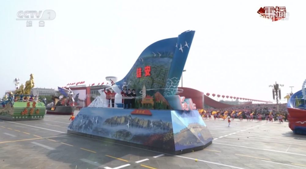彩车实现秦岭、宝塔山和现代城市的造型变化,充分展示陕西生态文化、历史文化、红色文化、科技文化、创新文化。