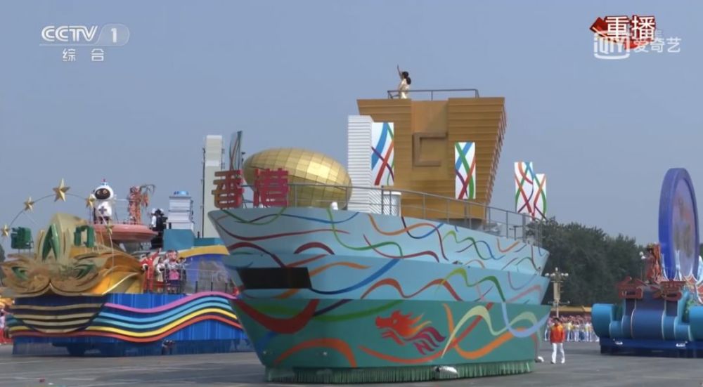 彩车一侧是C919大飞机造型,它的生产商——中国商飞坐落在上海浦东。应该说,飞机造型最能体现上海现代制造业的发展成就。一侧是轮船造型,上海正在推进包括航运中心在内的“五个中心”建设,应该说,轮船造型也符合上海的城市特征。