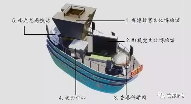 彩车上展示香港五个现在和未来的地标建筑模型,突显香港在文化艺术、创新科技、基建方面的发展。五个模型分别是香港故宫文化博物馆、M+博物馆、戏曲中心、香港科学园、高铁西九龙站。
