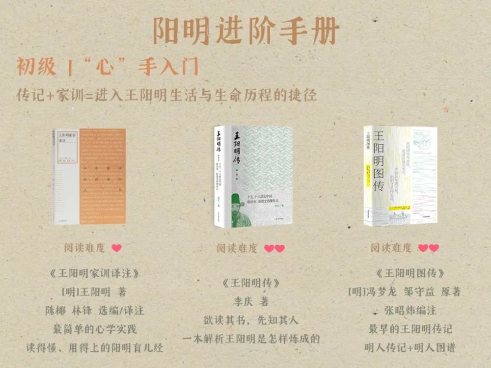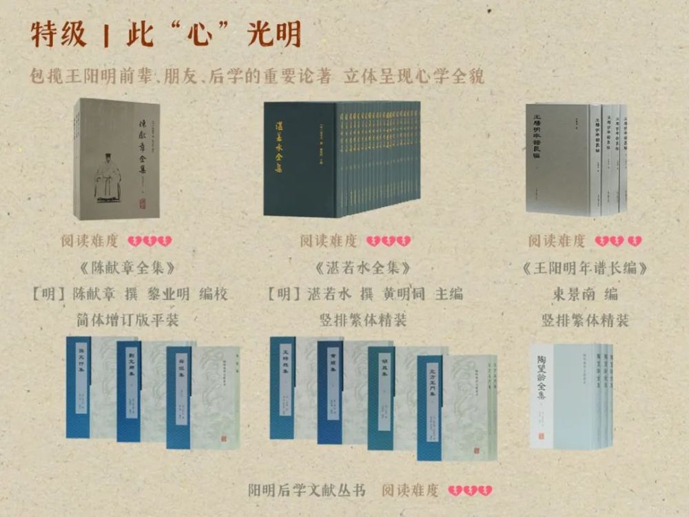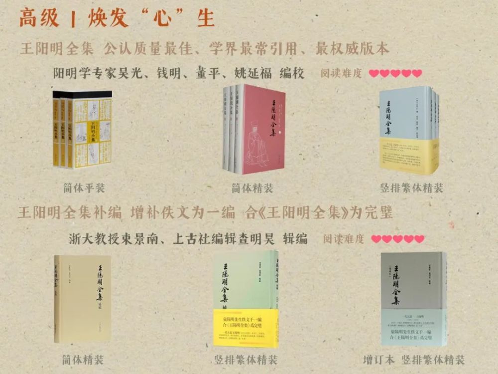 至此,古籍社五编室阳明心学发展脉络的作品已基本齐备!阳明心学爱好者可据下面这份进阶手册,开启自己的修习之路!祝大家在新的一年也能“心”想事成: