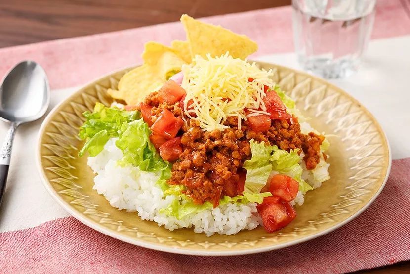 本来是墨西哥的料理,肉馅和西红柿,芝士,牛油果等盖浇在饭上的料理!