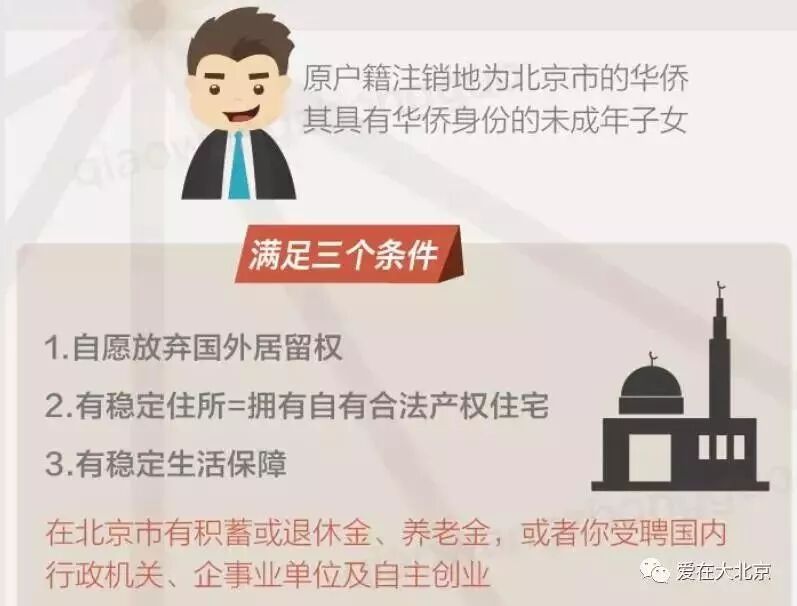 举个例子,比如想要在北京落户的华侨或留学生就需要满足这几个条件