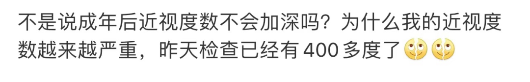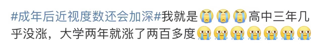 前不久#成年后近视度数还会加深#这一话题更是登上热搜,不少网友「现身说法」↓