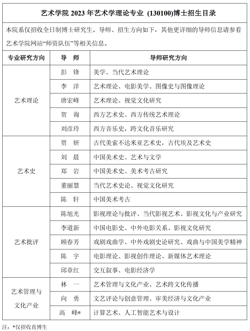北京大学艺术学院2023年“申请-考核制”博士研究生招生说明
